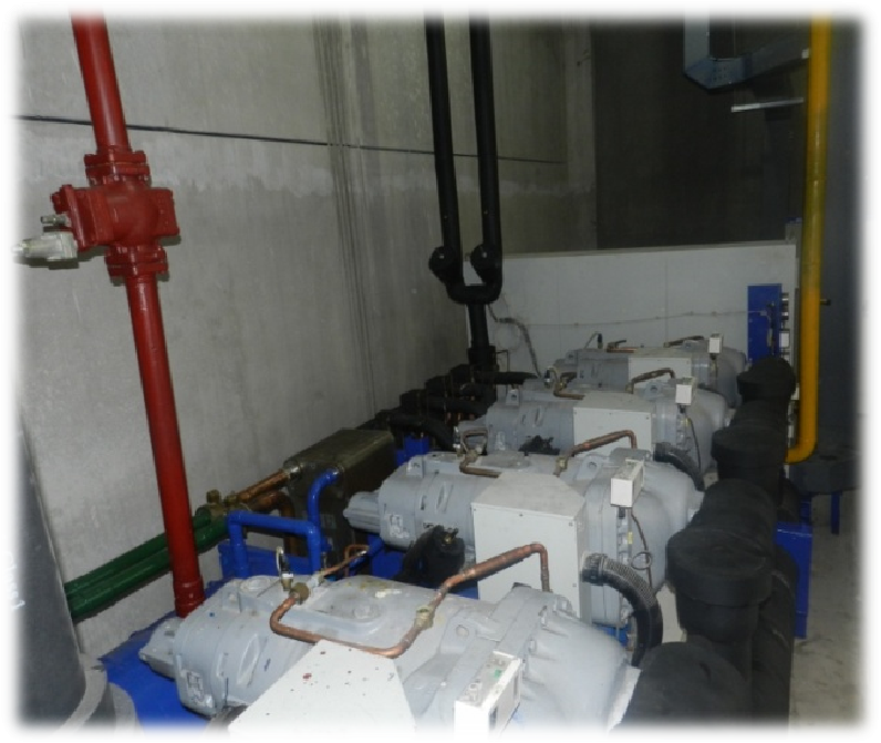 采用開利低溫300匹并聯(lián)螺桿機(jī)一臺,中溫開利并聯(lián)280匹與245匹各一臺。