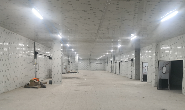 攀西地區(qū)的電商配送&正好超市周轉(zhuǎn),占地約2500平方,冷庫內(nèi)高為4.5米,分冷凍庫3間、冷藏庫4間、預(yù)冷室1間、肉類加工間1間、包裝間1間、加工產(chǎn)品出貨區(qū)1間,各冷庫溫度不同均由自動(dòng)控制。